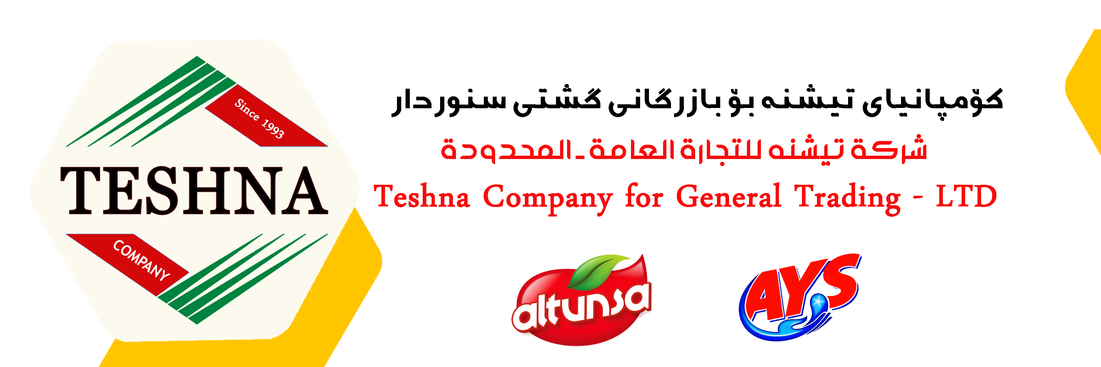 کۆمپانیای تیشنە کۆمپانییەکی خۆماڵییە بۆ بەرهەمە خۆراکی و پاککەرەوەکان و بریکاری سەرەکی کۆمپانیای( ئالتون قایا ) بۆ براندەکانی ئالتون سا و ئایس لە شاری سلێمانی و دەوروبەری .